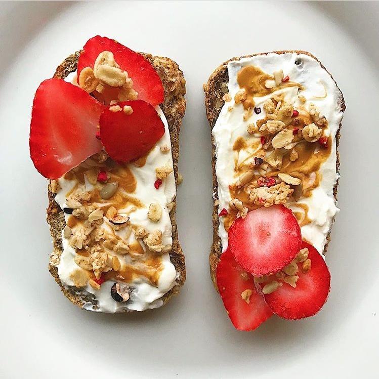 🍞+希腊酸奶+🥜酱+谷物麦片+🍓