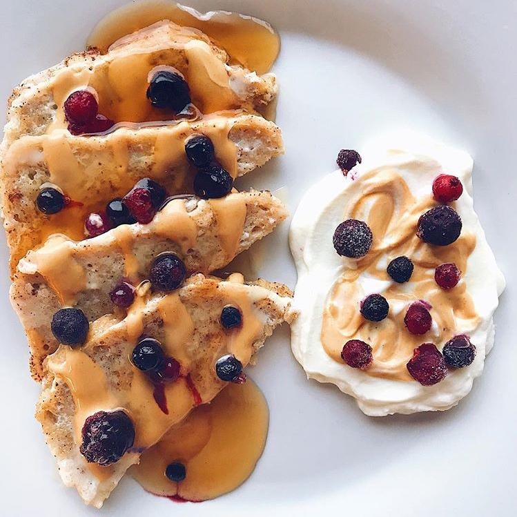 法式吐司+希腊酸奶+🍒🍓+花生酱+枫糖浆
