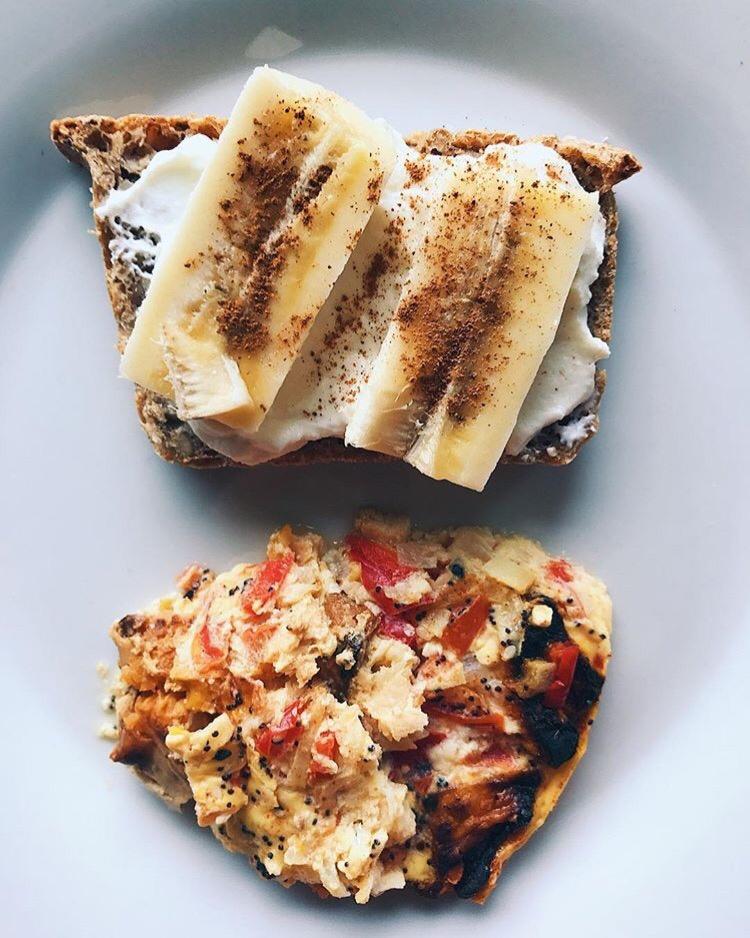 上:希腊酸奶+🍌+肉桂粉