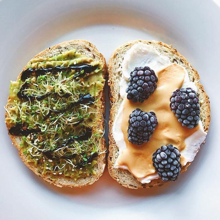 左:牛油果泥+豆芽菜+意大利黑醋