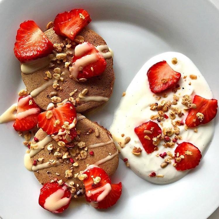 薄煎饼+希腊酸奶+🍓+燕麦+肉桂苹果
