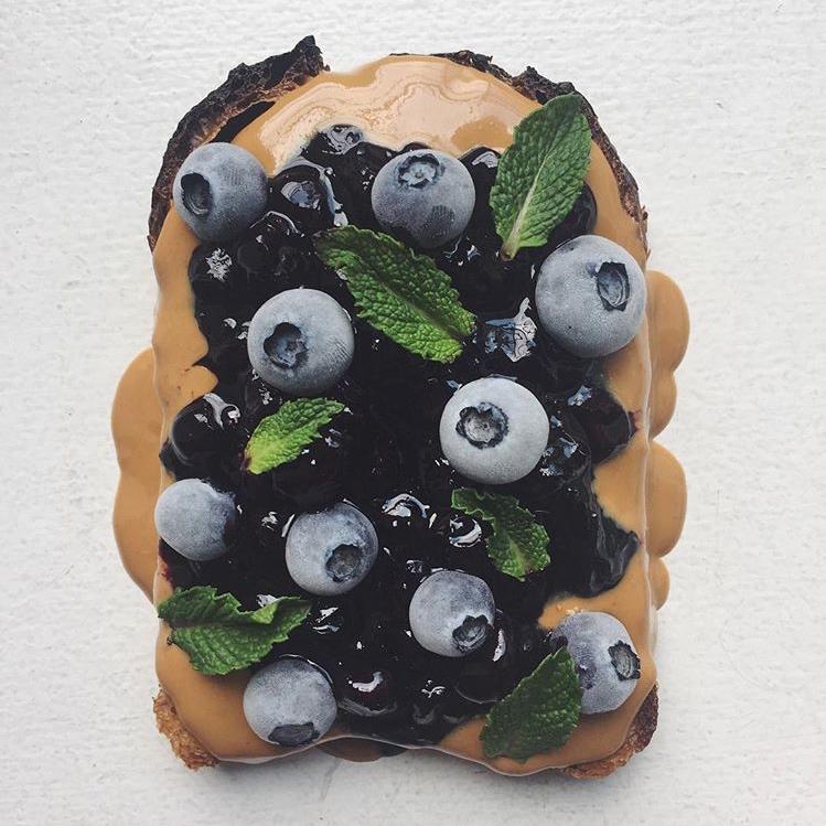 蓝莓+蓝莓酱+开心果浆+薄荷+烤吐司