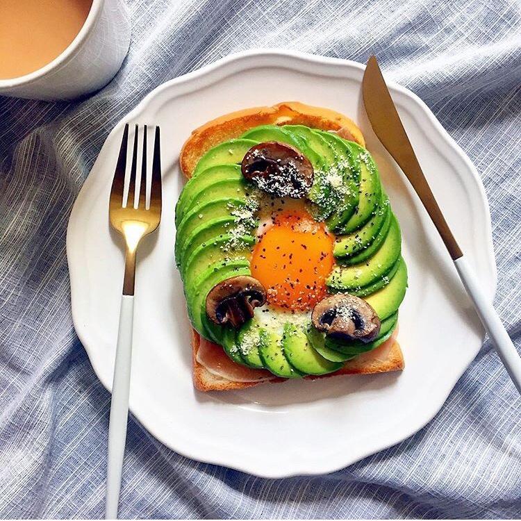 黄油烤吐司+煎蛋+培根+牛油果+口蘑+芝士粉/胡椒