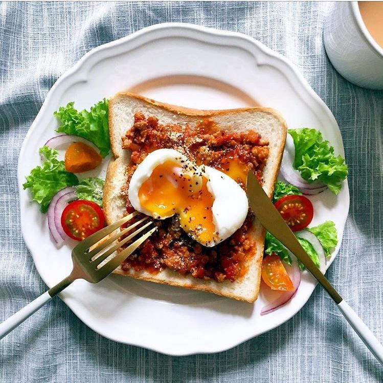 吐司+流黄蛋+肉酱+杂蔬