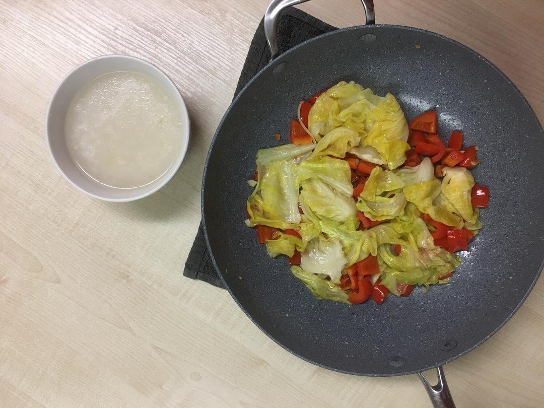不放辣的,红椒炒甜卷心菜(sweeheart cabbage)、牛肉粥 2017年9月28日记录