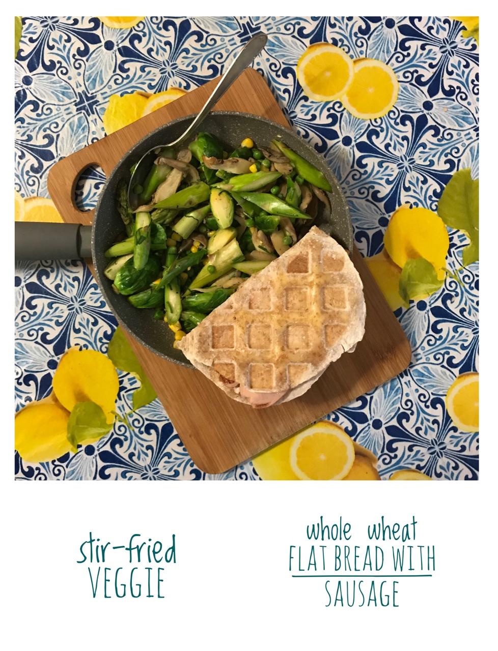 村里连续几天阴雨绵绵的…想吃点春意盎然的食物(?)炒蔬菜有孢子甘蓝,芦笋,豌豆,玉米和平菇,就用油盐黑胡椒和细葱调味,吃...