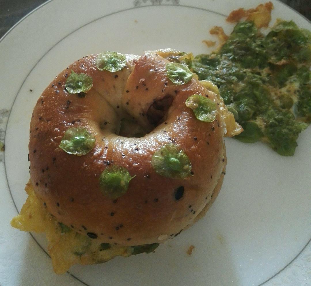 榆树钱儿煎蛋贝果三明治