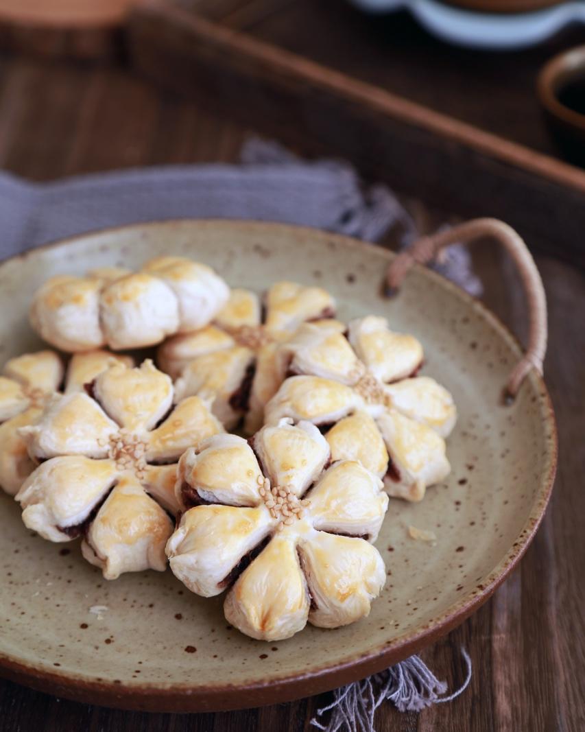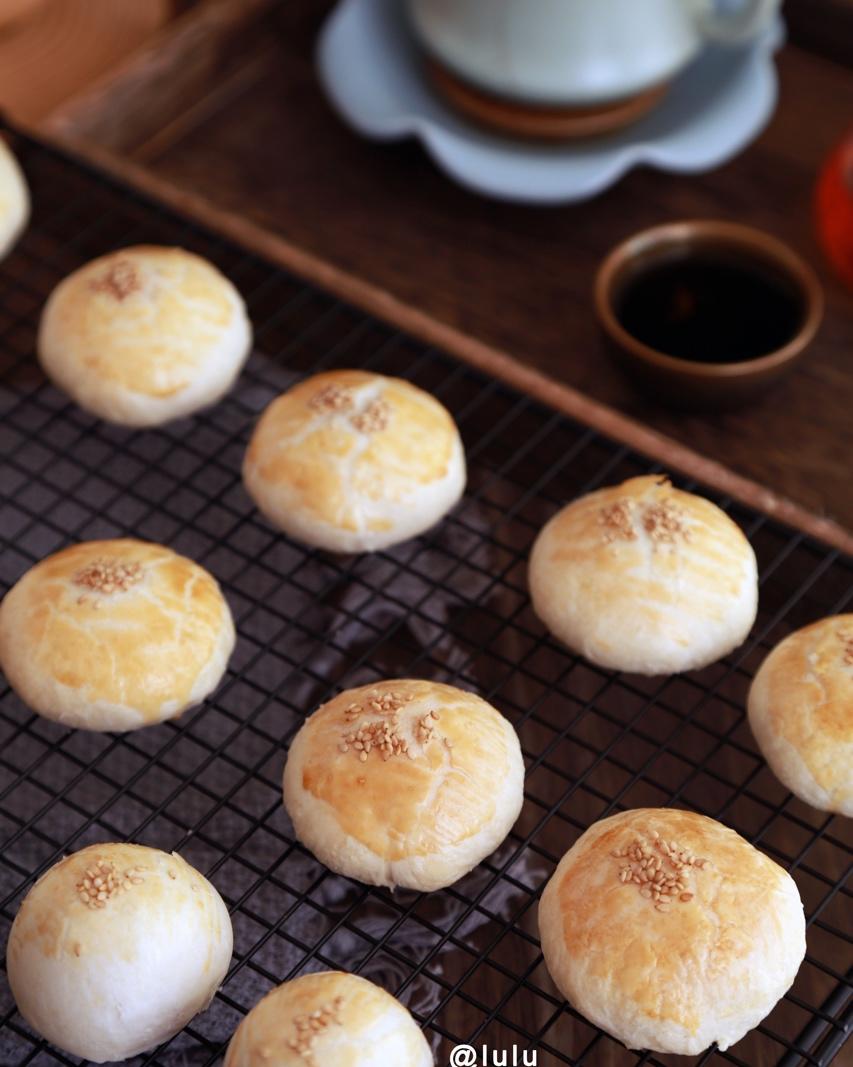 [太阳]酥皮点心[太阳]今天做了五仁馅儿和豆沙馅儿的,等着放凉后装盒子!