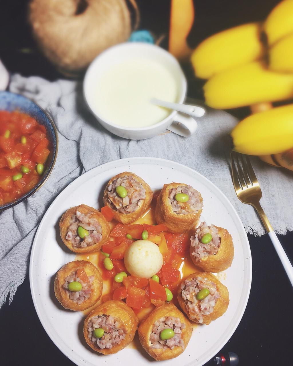☑︎ 香芋肉末豆腐酿➕牛奶➕水果