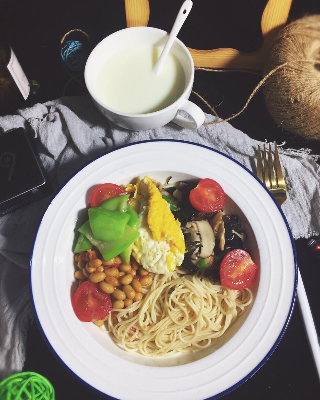 ☑︎ 五彩拌面➕牛奶