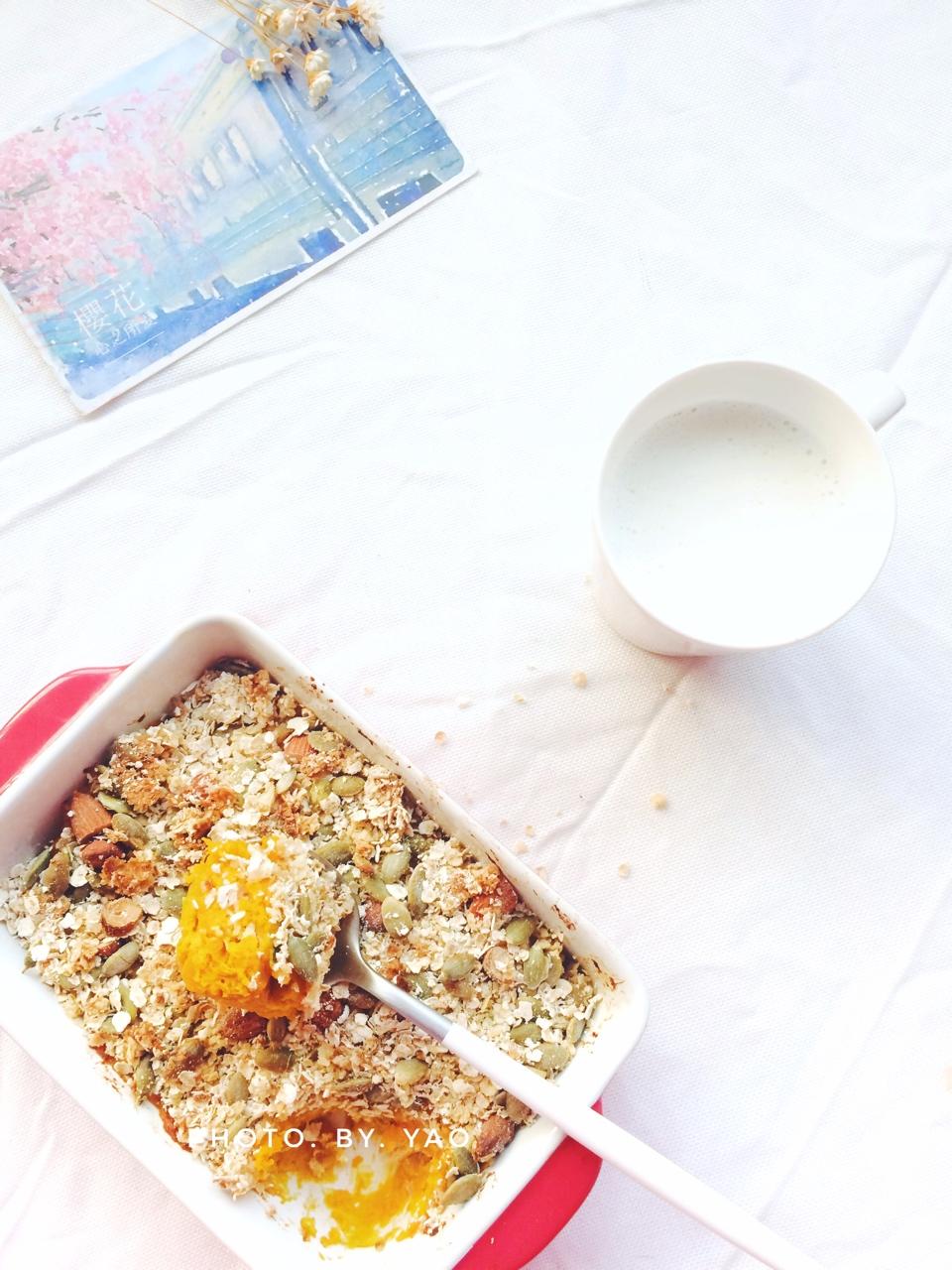 早食。烤南瓜金枪鱼燕麦酥➕牛奶