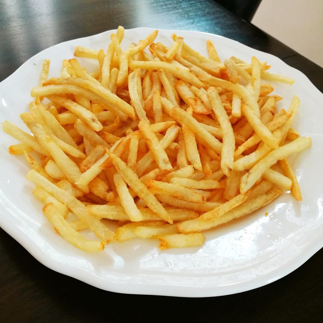 炸薯条,外层裹了生粉,炸出来外脆里绵,口感棒极了!