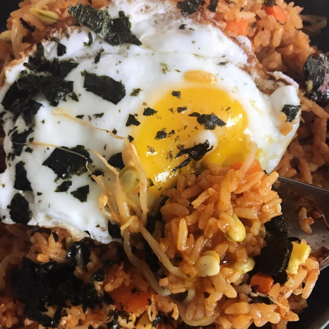 豆芽饭 挺好吃的 鸡蛋我喜欢全熟的 半熟就是拍照好看 😅 下回做辣的试试