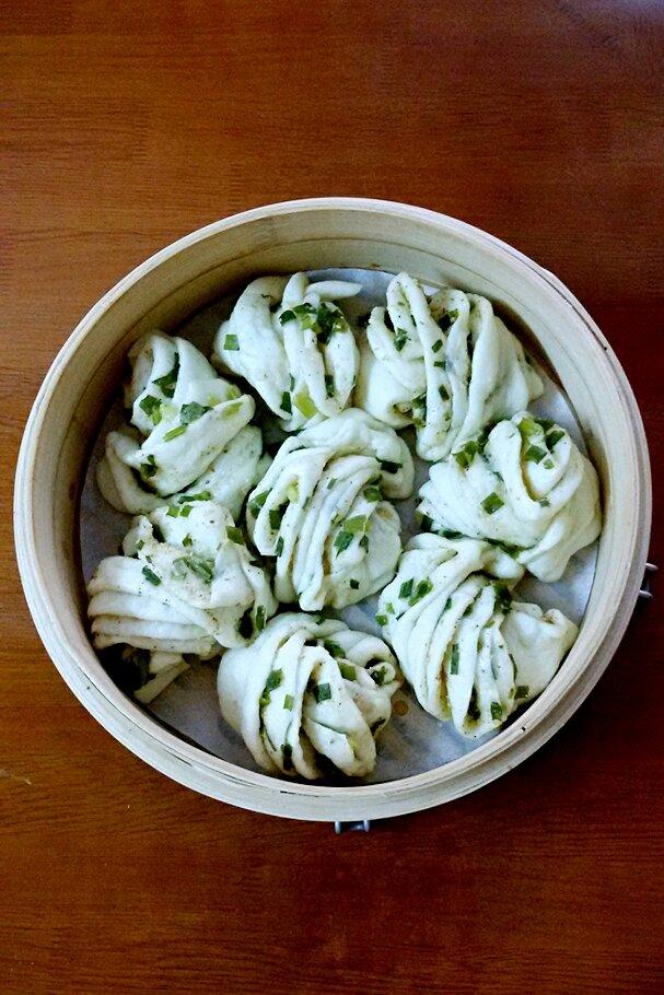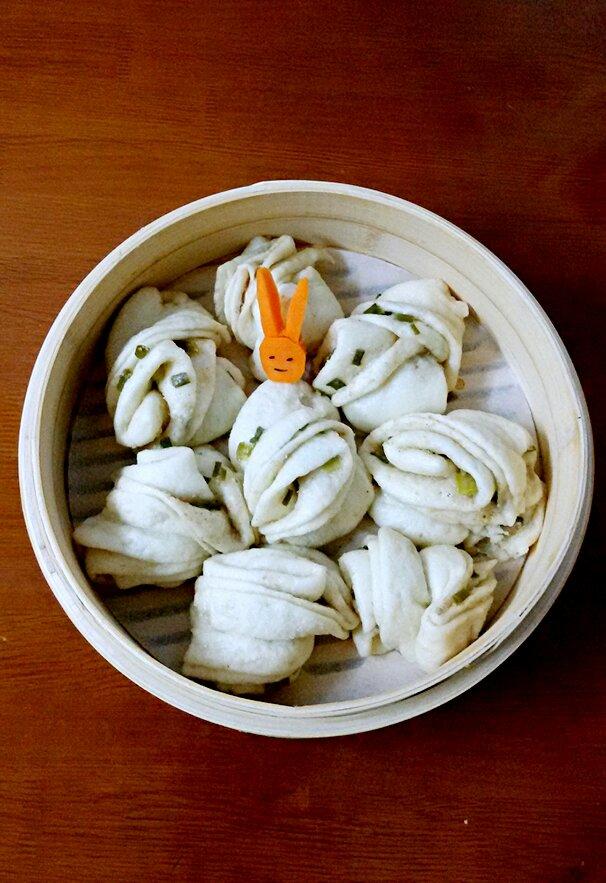 🍀香葱花卷,儿子挺喜欢吃的。最近有点上火,所以不敢烤面包了,...