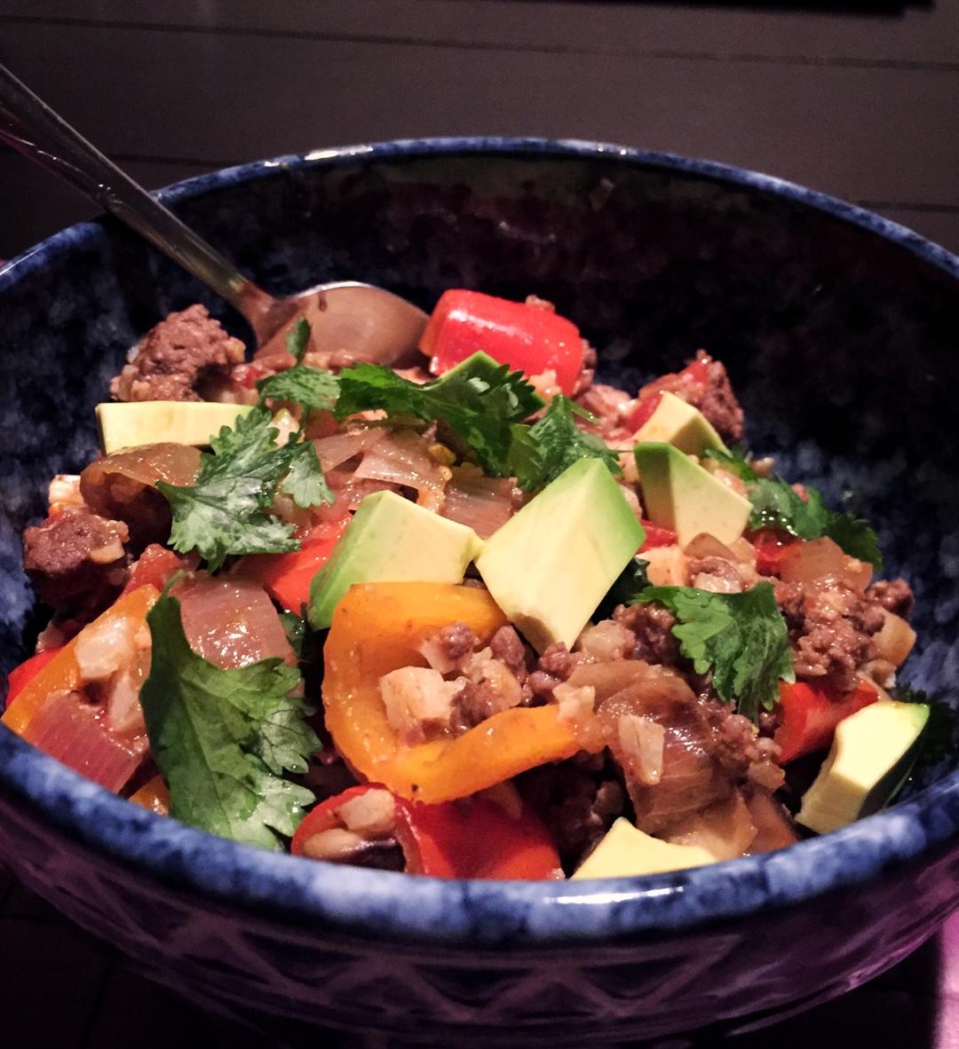 前两天在网上查到了菜花饭代替米饭的食谱,于是晚餐做出了墨西哥料理牛肉菜花饭,加上香浓的芫茜叶和牛油果和柠檬汁,好次 #晚...