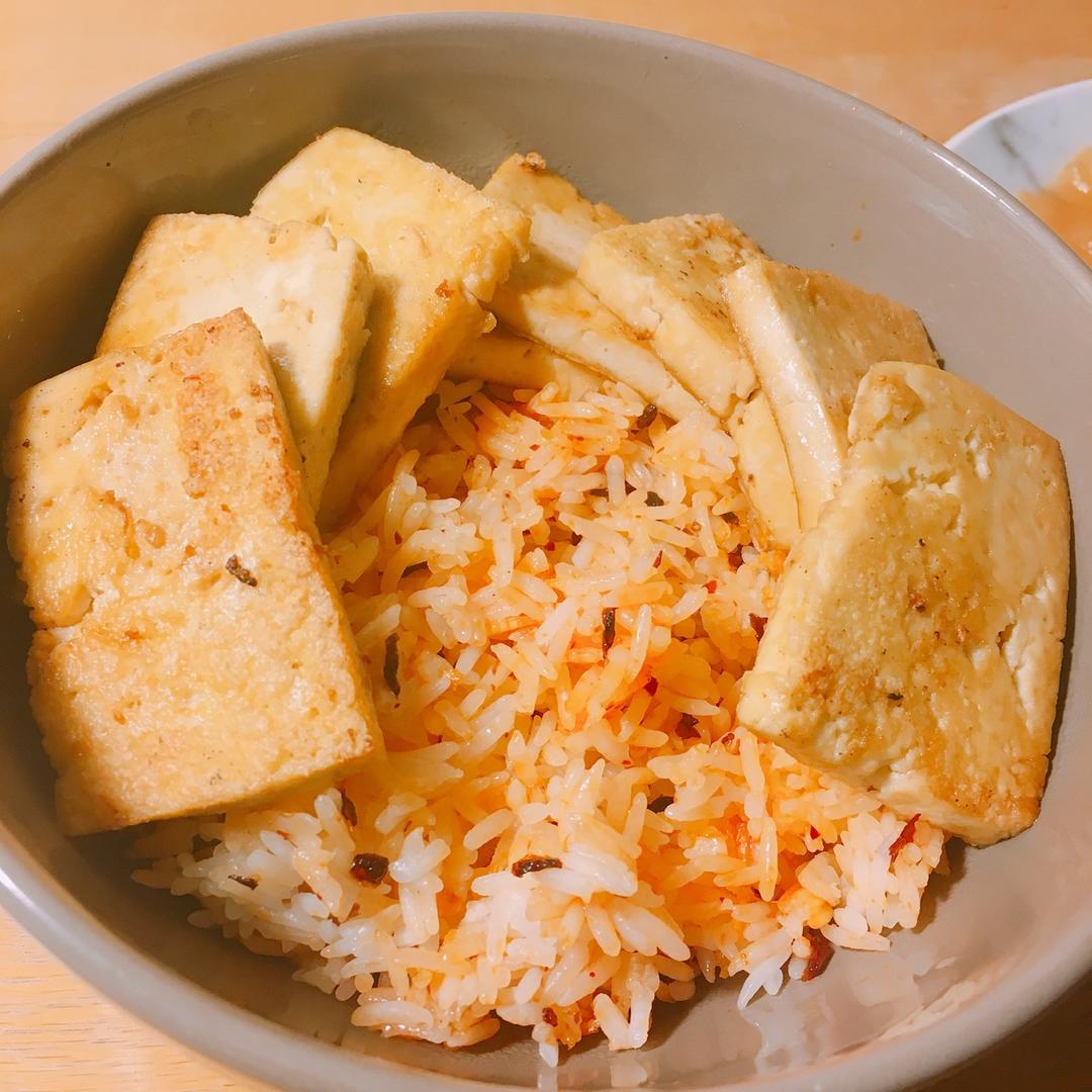 老干妈拌饭➕煎豆腐块。