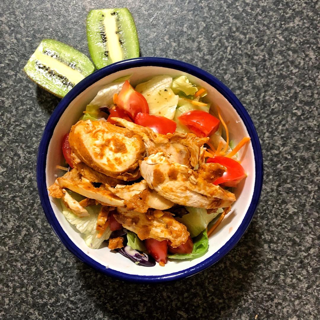 鸡胸肉色拉(sweet crunchy 加西红柿加BBQ鸡胸肉 淋的油醋汁)