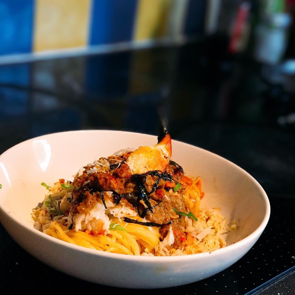 蟹肉蟹粉撈天使面😋