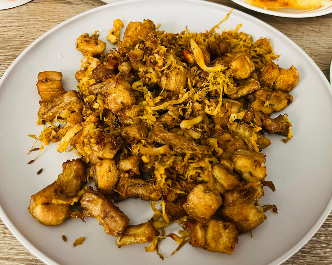 酸菜烤五花肉 酸辣土豆丝 还有 冷冻里剩了好久的火锅牛肚