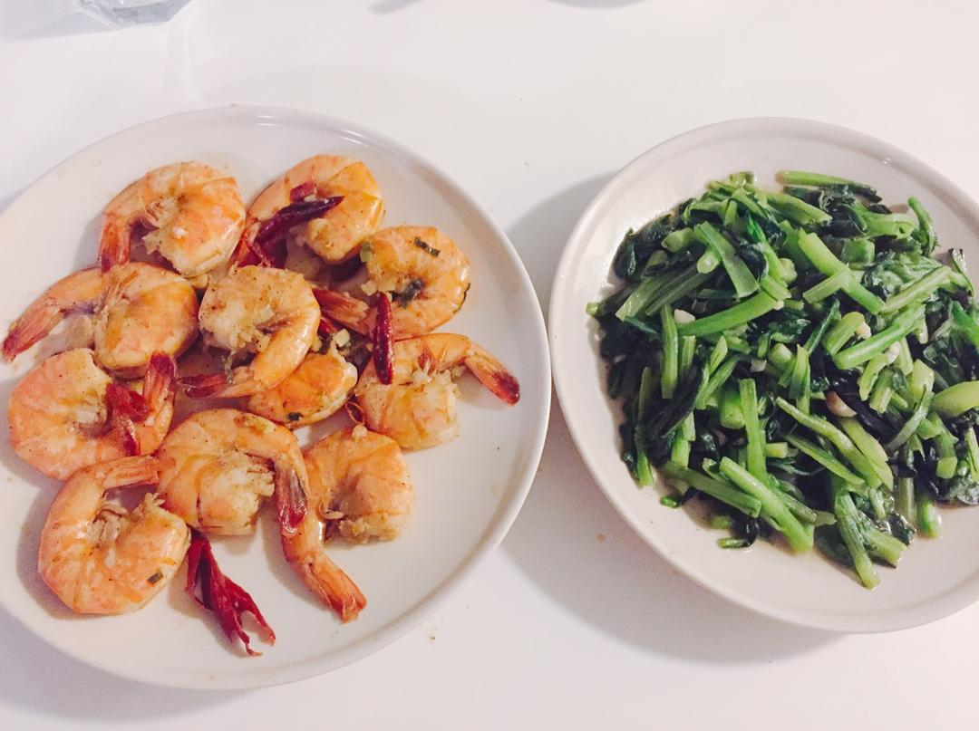 呛爆大虾、清炒油菜