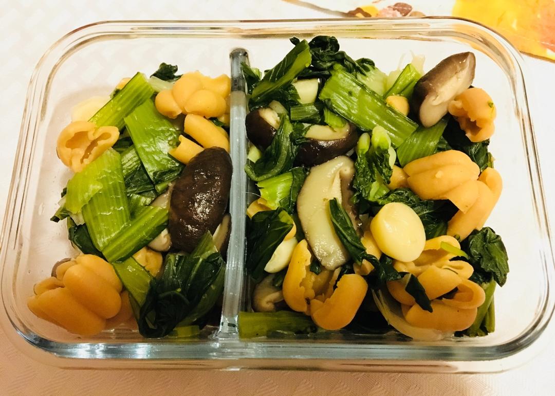 油菜香菇奶白菜南瓜意面~昨天刚做好和中午加热后的对比图👻