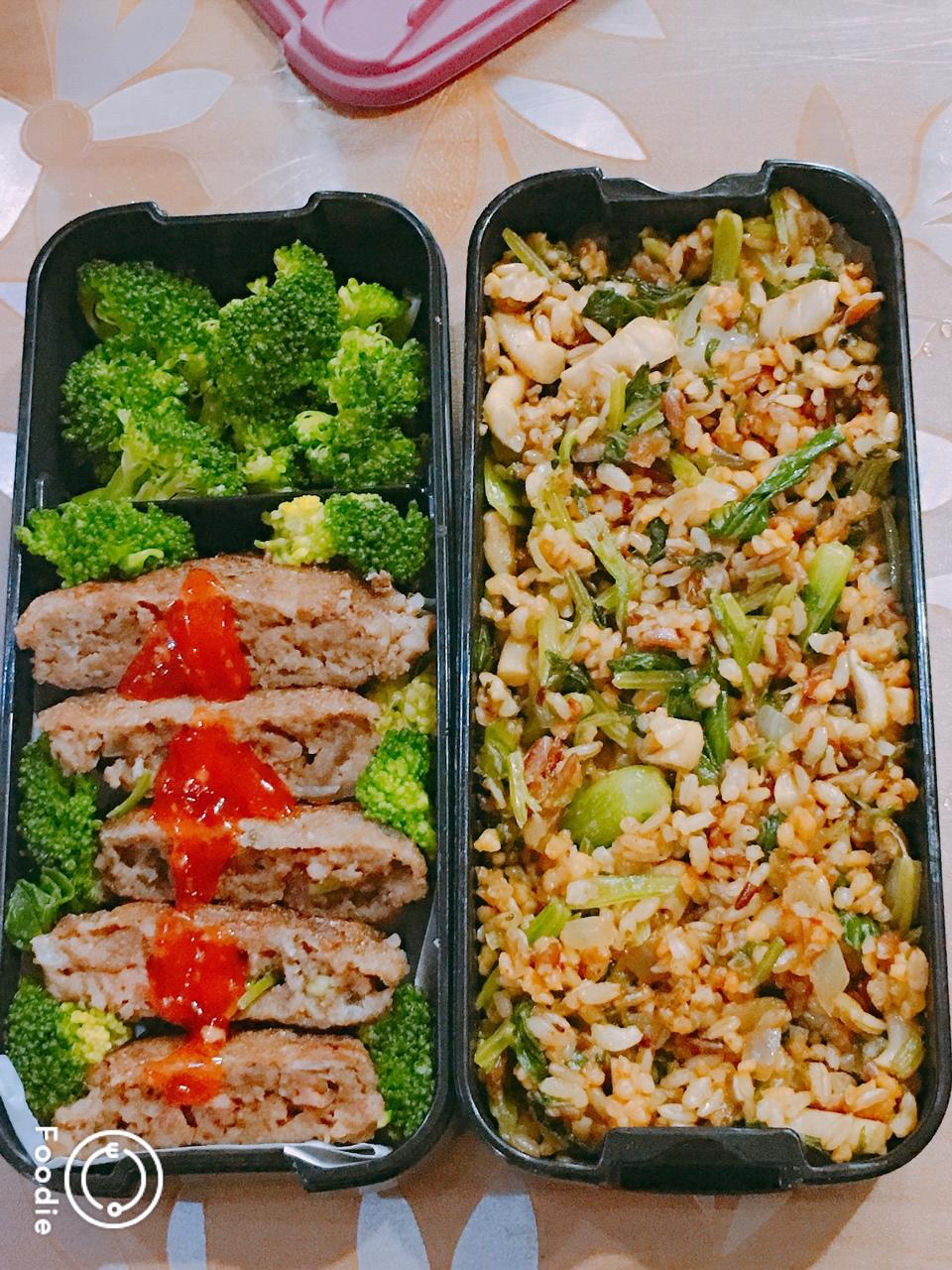 减肥Day2:咖喱炒时蔬饭➕洋葱牛肉饼➕白灼西兰花。
