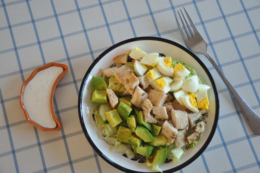 牛油果鸡胸肉沙拉,做法几乎一样,把面包换成牛油果