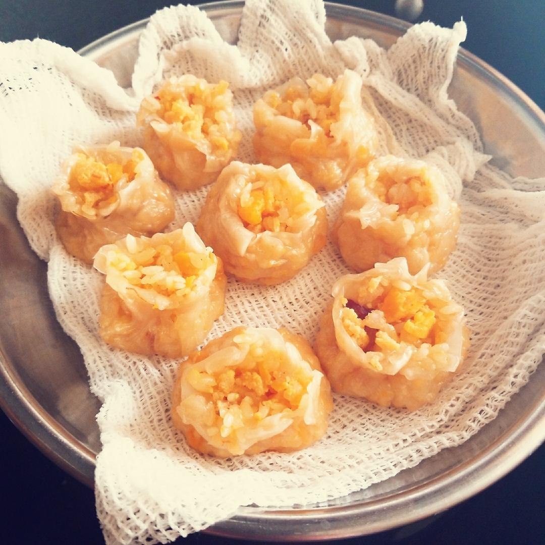 大小不一,造型负分的咸蛋黄虾肉糯米烧卖