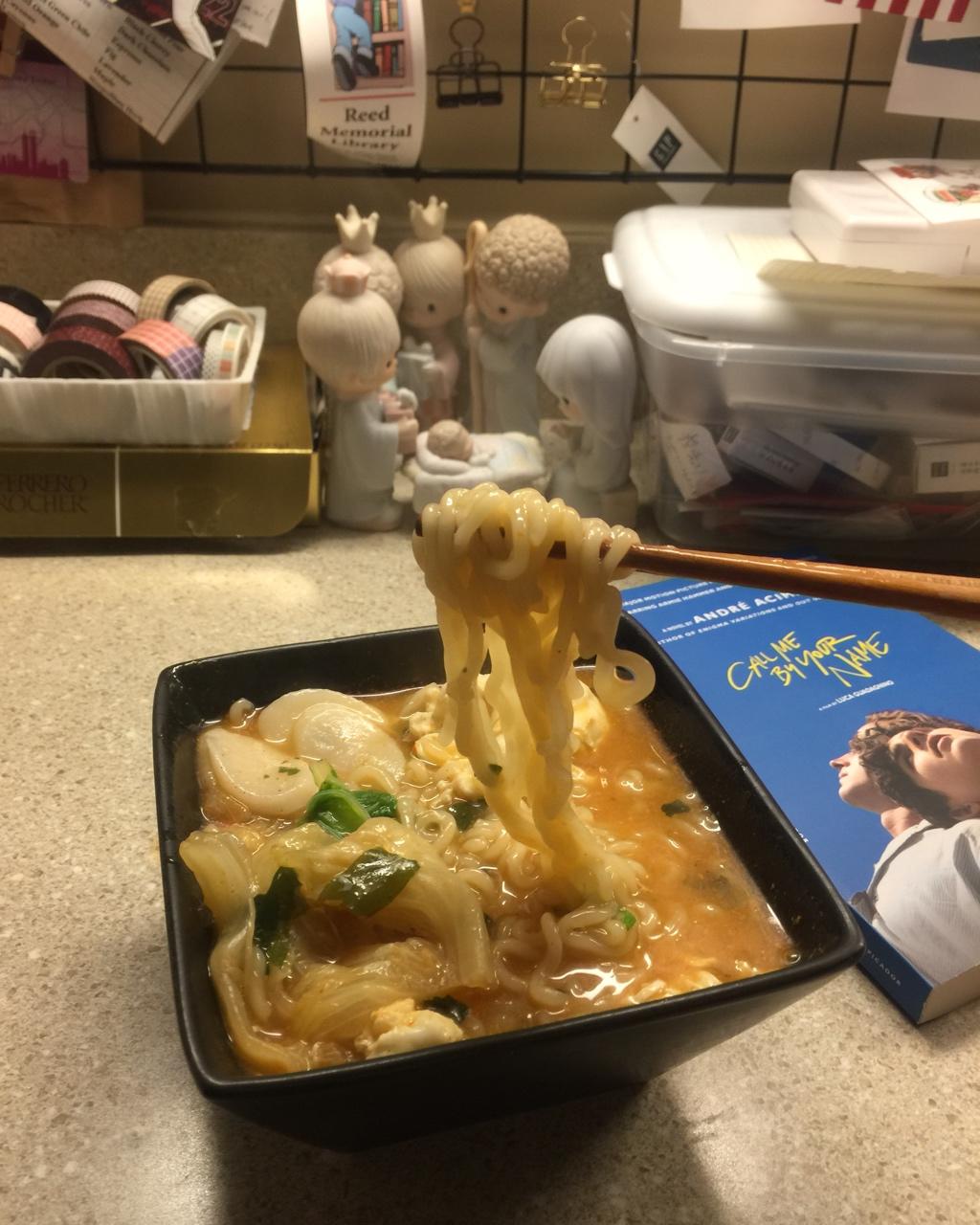 加了生菜 白菜 年糕 鸡蛋🥚让一碗泡面看起来健康一点🍜给自己一个借口吃下去