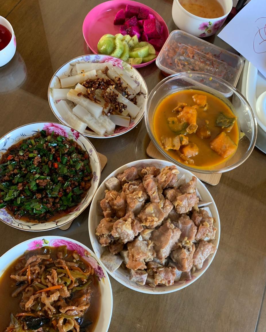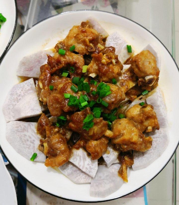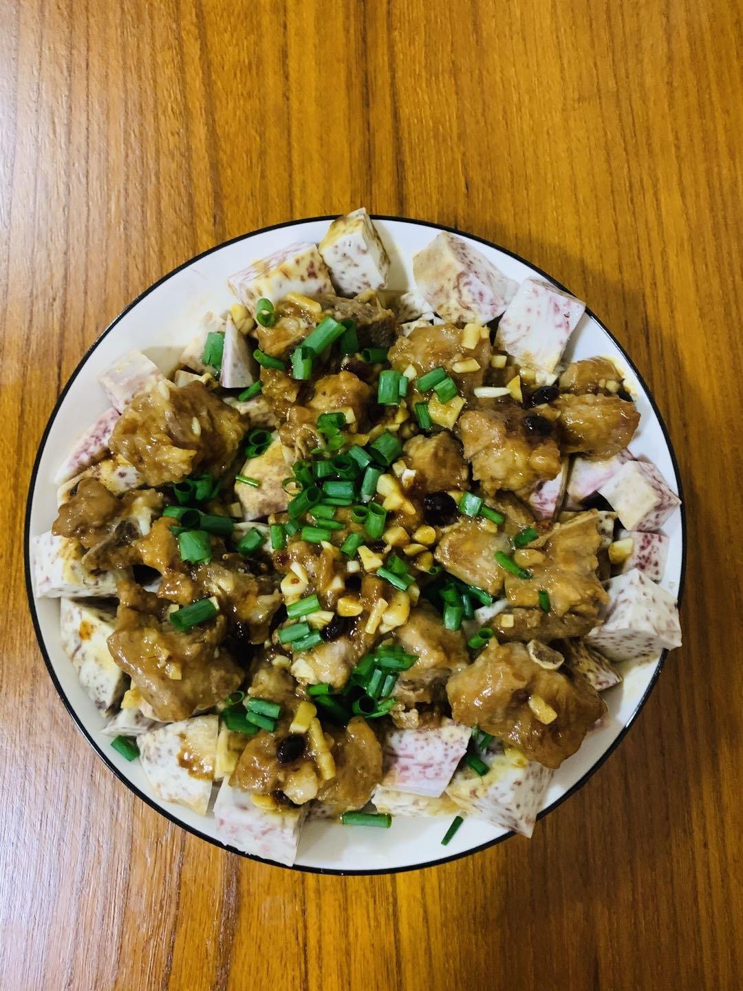 第一次做的香芋蒸排骨,emmmm,排骨咸了,香芋不知道什么原因,水水的,不粉,不好吃😂,形具神不备