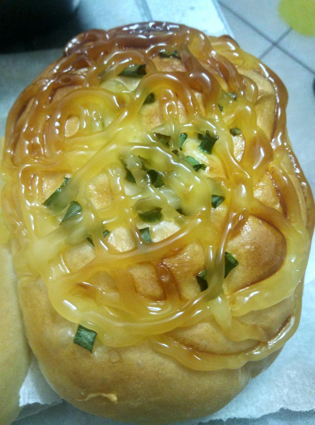 葱香沙拉酱面包,刚刚做起,香味十足,没放芝士,不过已经够好吃了!
