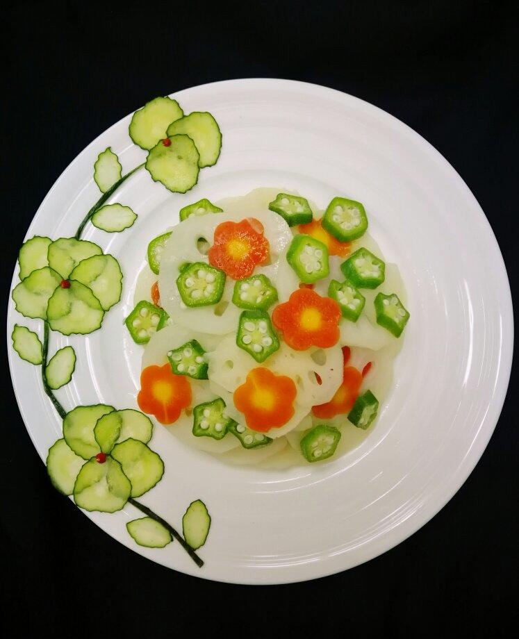 炝莲菜。(另加了秋葵胡萝卜)