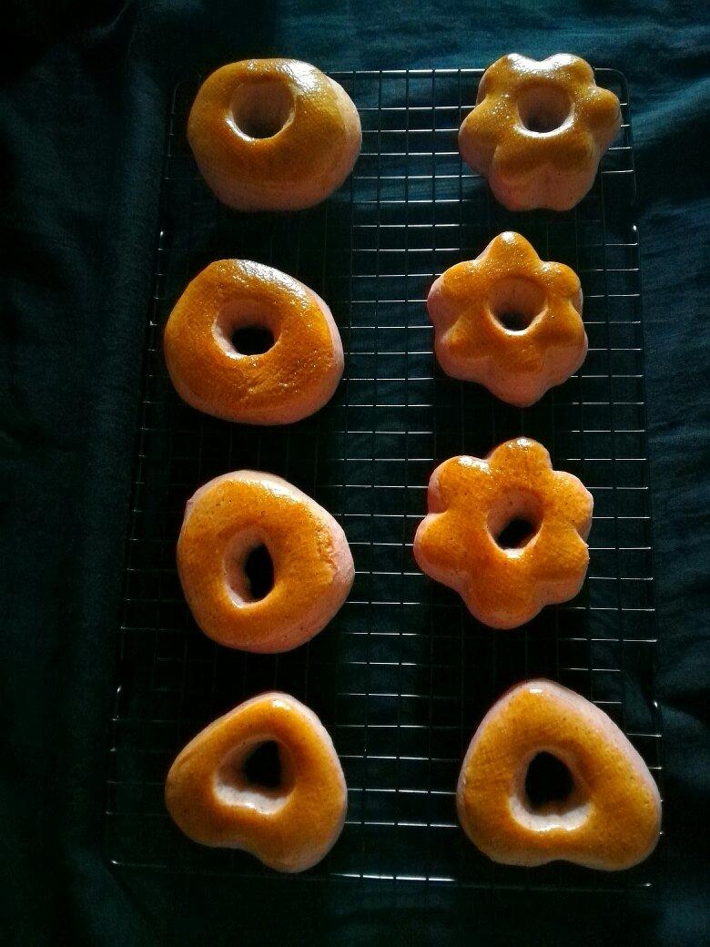 火龙果烤箱版甜甜圈。面团揉好后太软,模具压好拿起都变形。...
