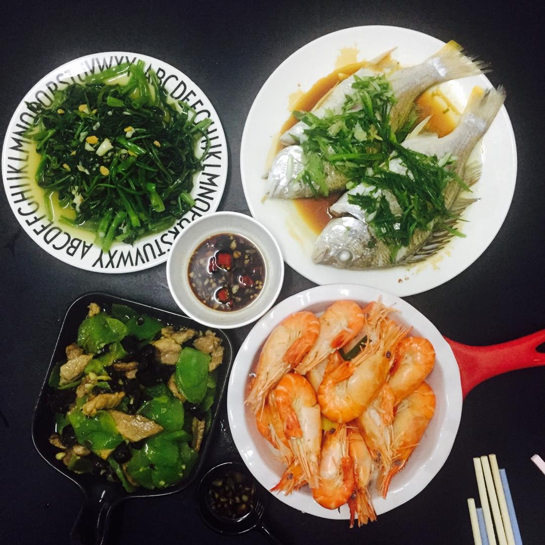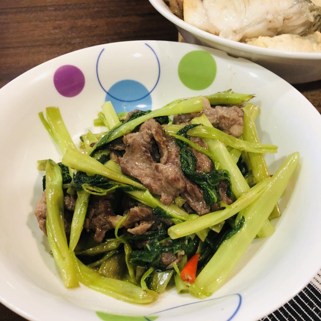 通心菜炒牛肉,豆腐焖鱼