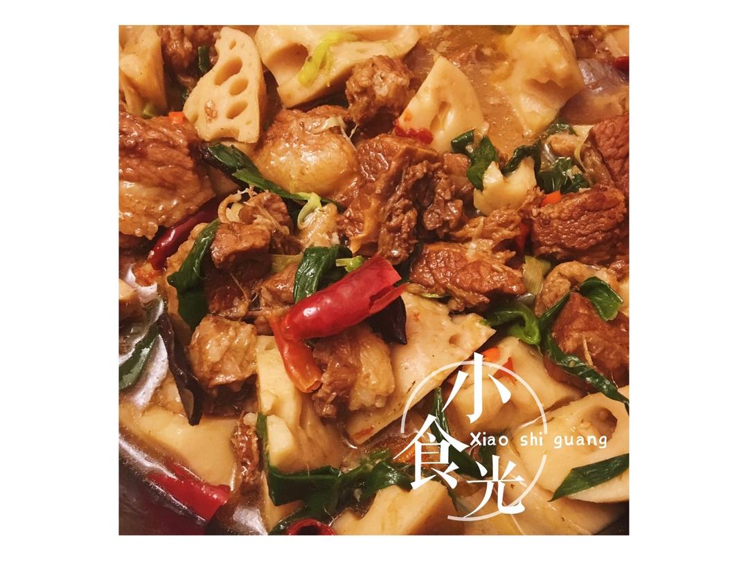牛腩软硬适中.姜葱蒜比食谱多一点. 我的牛腩肥一点. 最后20分钟加了几个切断的小米辣.解腻. #午餐•2017年11月...