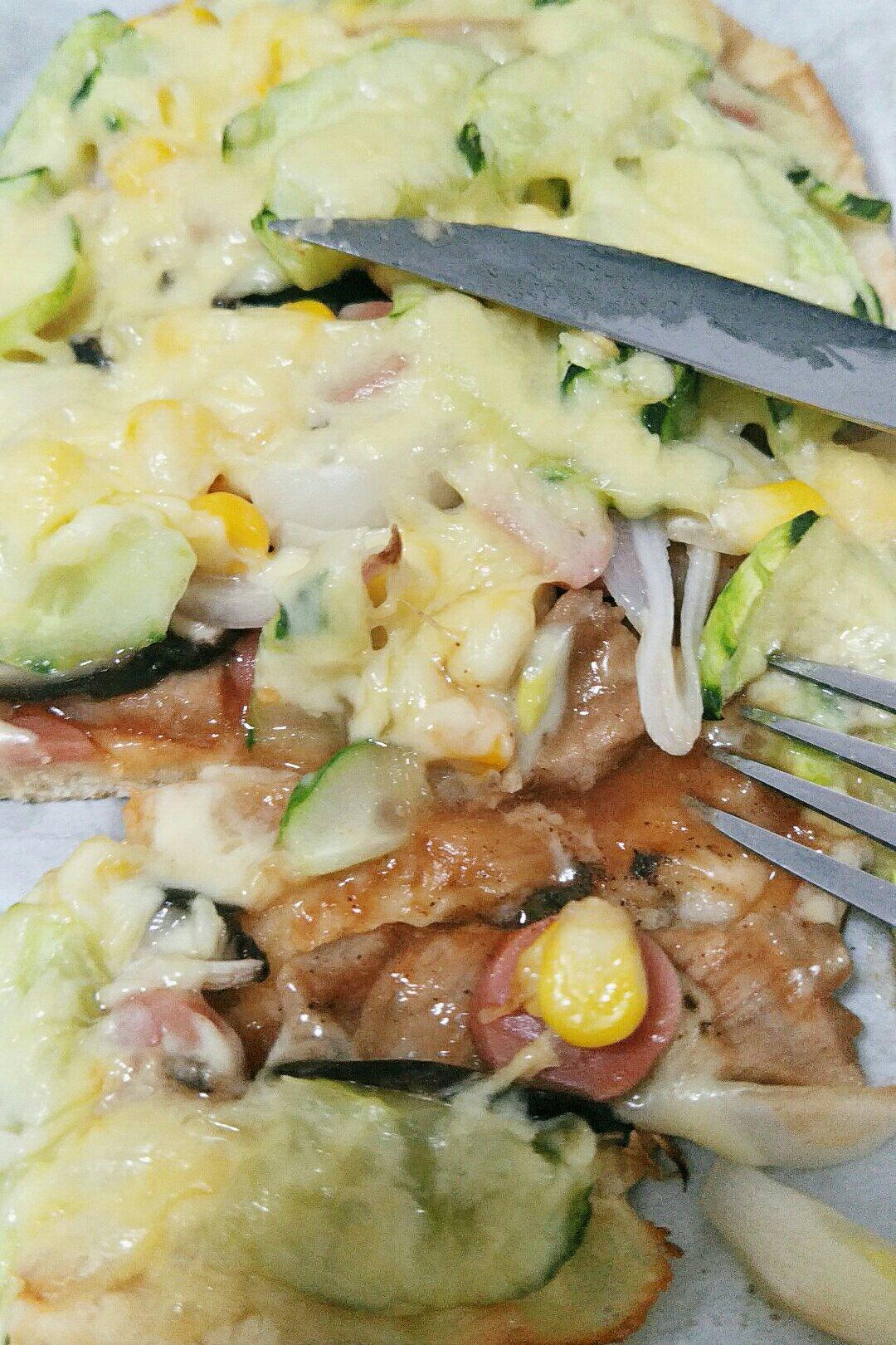 pizza+酱拌烤肉+银耳莲子汤+牛排