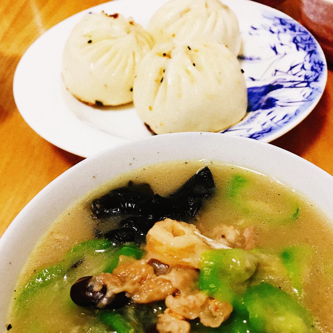 昨天剩的鸡汤被妈妈加了好多好多东西来了个改良版大乱炖,配上生煎包也很是好吃的(๑´ڡ`๑...