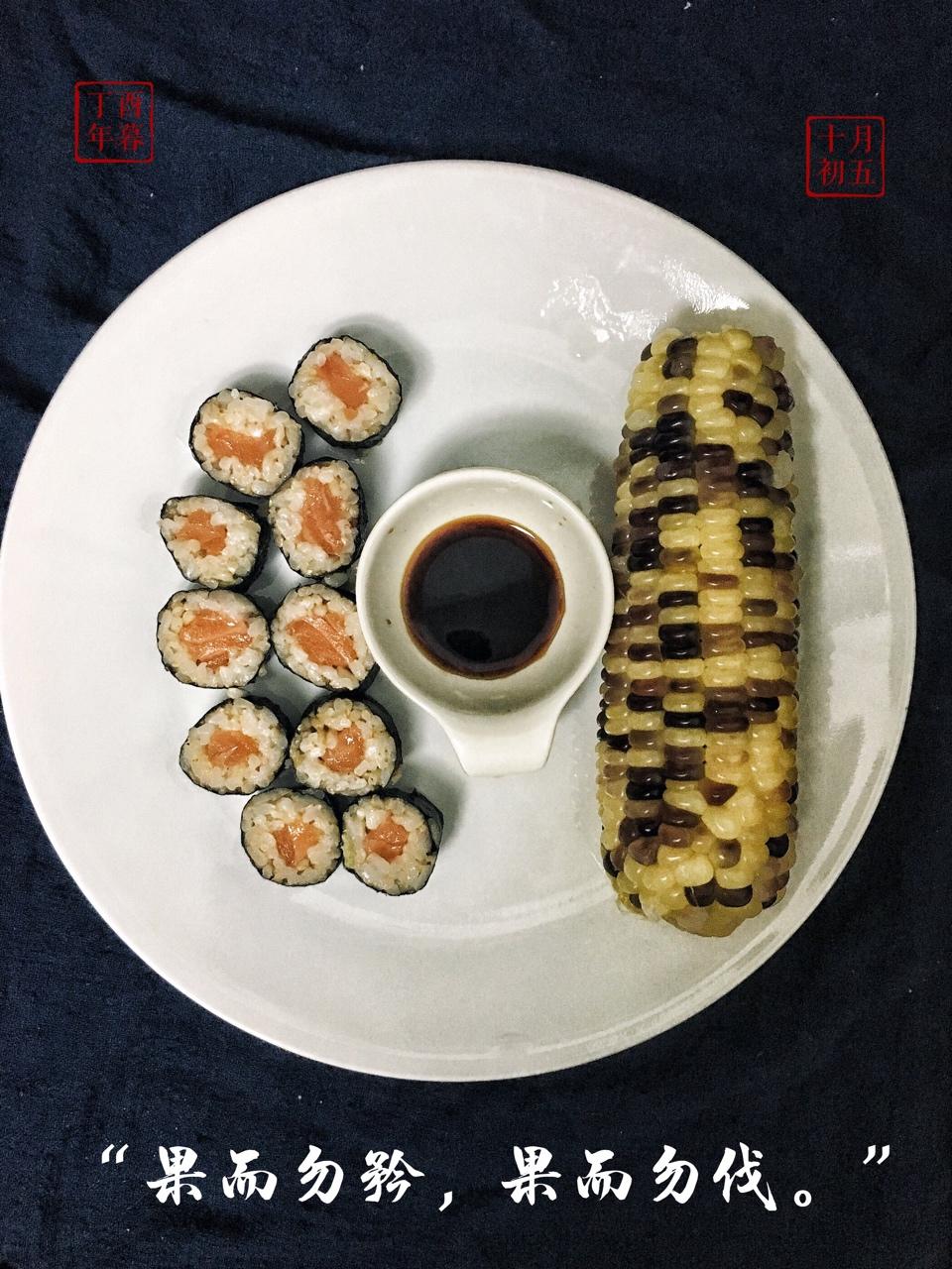 糙米三文鱼卷🍣蘸薄盐酱油