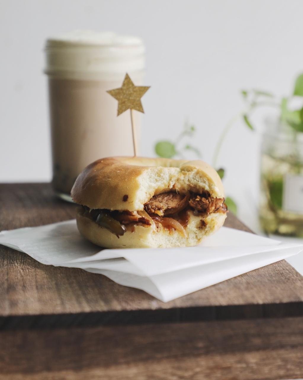 还加了点洋葱进去,配贝果、鸡排都很赞
