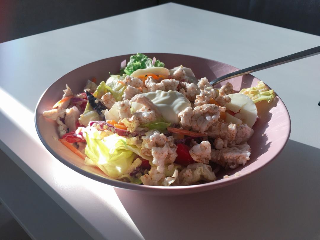 鸡胸肉 番茄 沙拉菜杂烩 洋葱 藜麦 掰碎的大饼