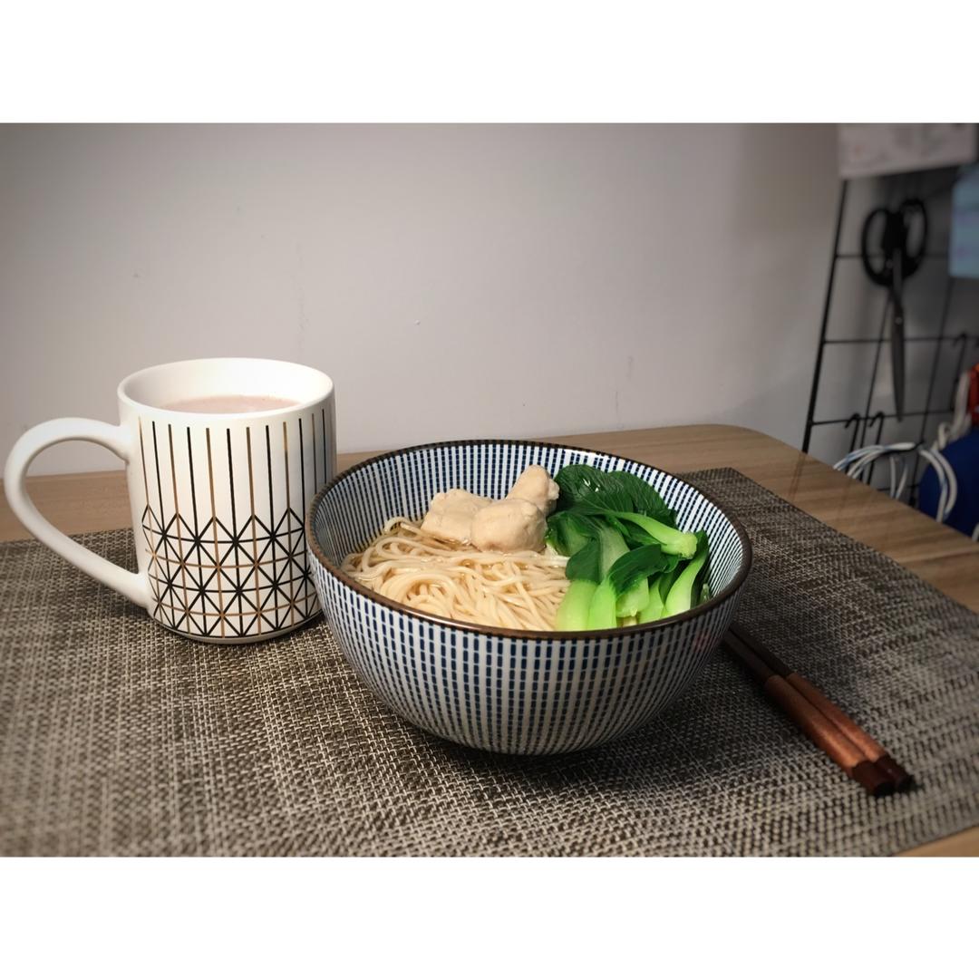 一碗面,一杯豆浆,早餐很满足了。