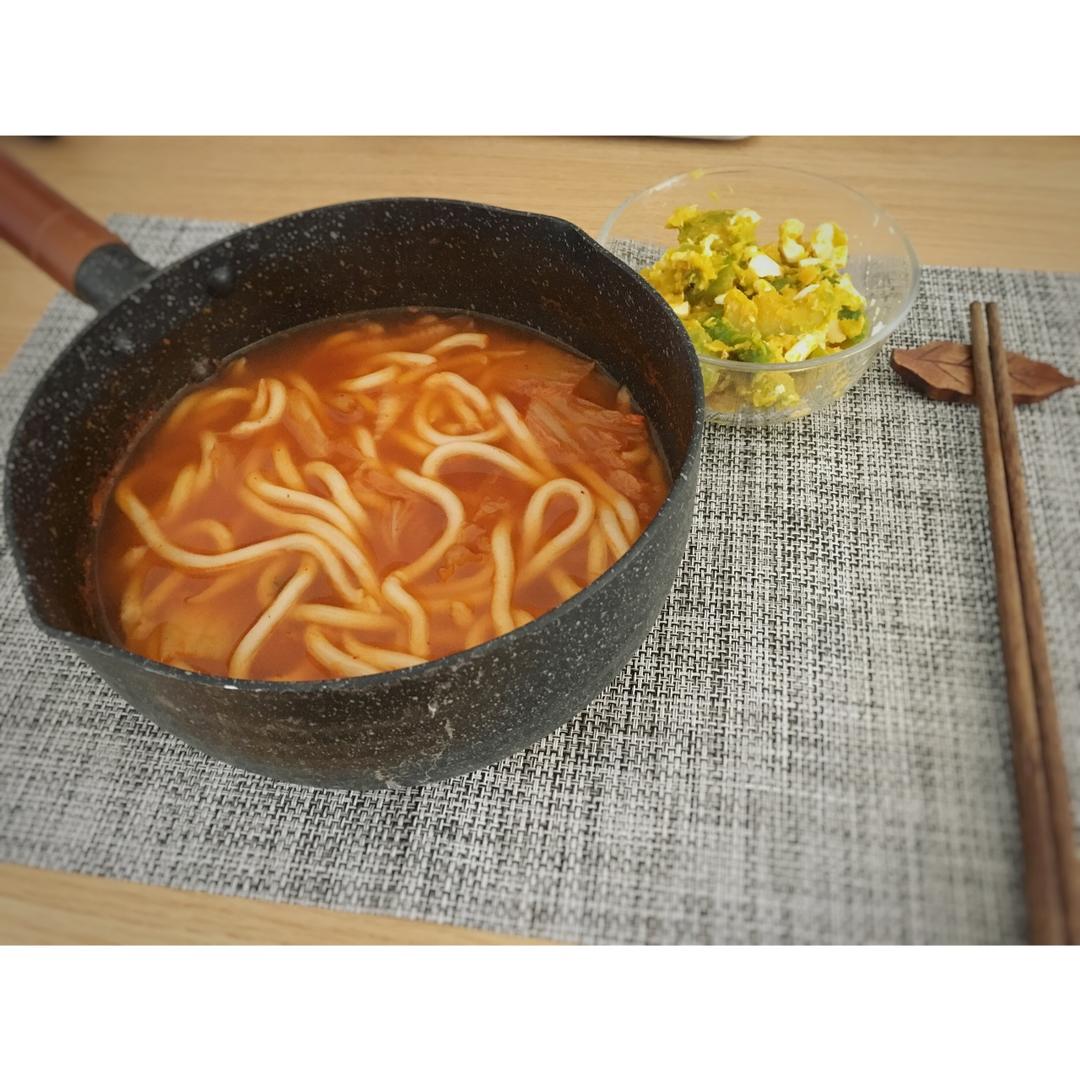 泡菜炖乌冬+鸭蛋南瓜