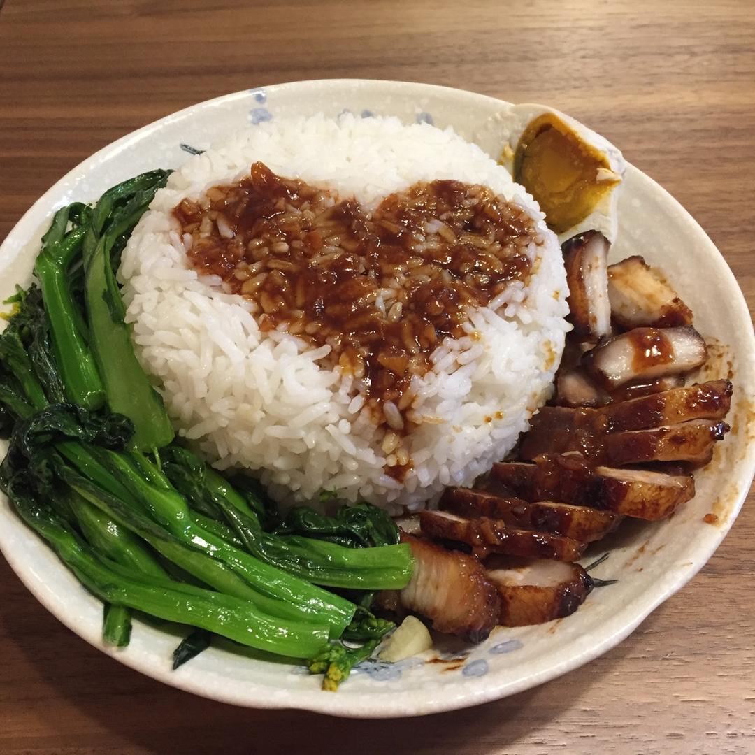 蜜汁叉烧饭要配咸蛋…多吃青菜哦🙃🙃
