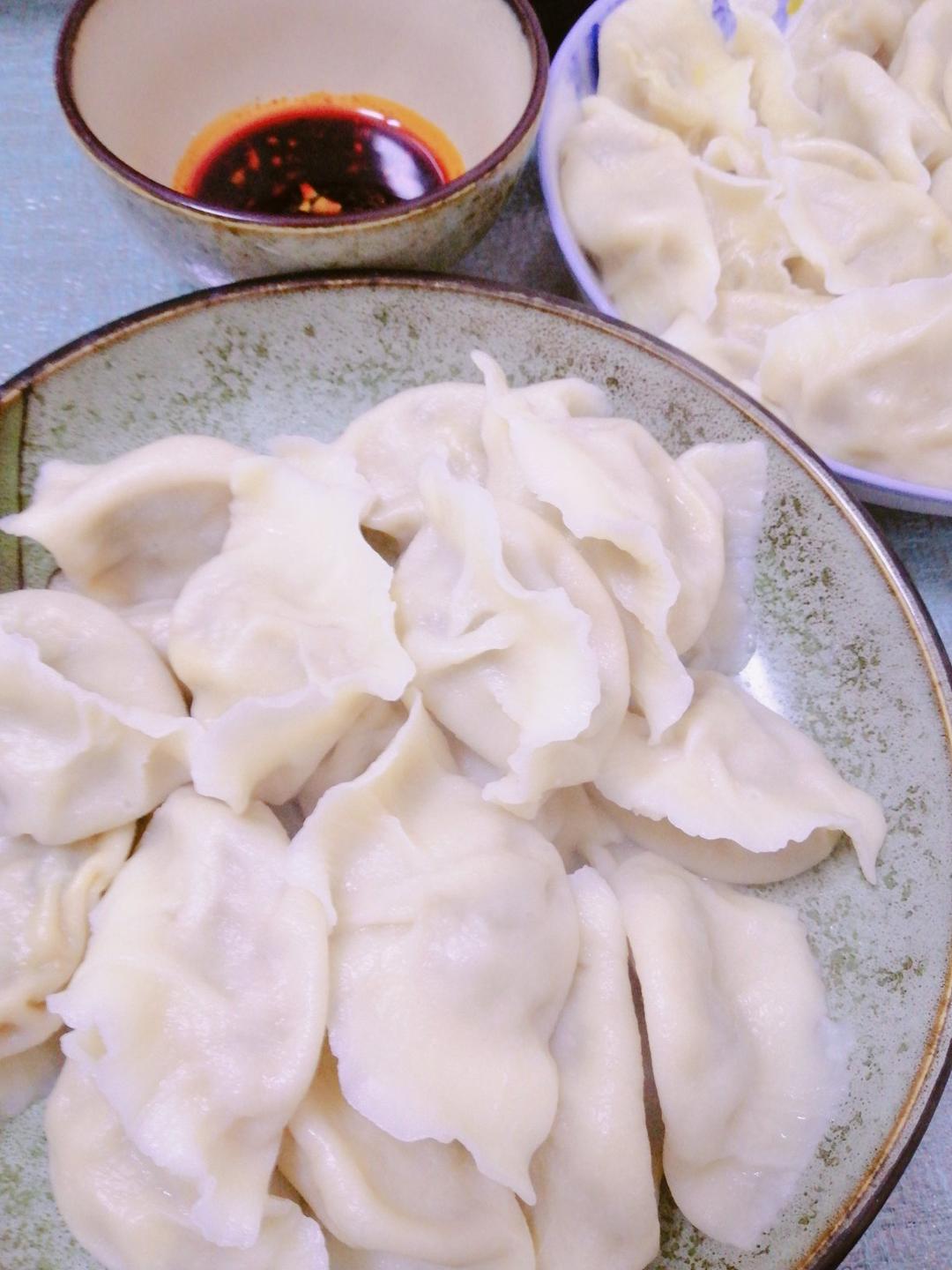 妯娌妹包的韭菜鸡蛋和番茄鸡蛋的澄面蒸饺