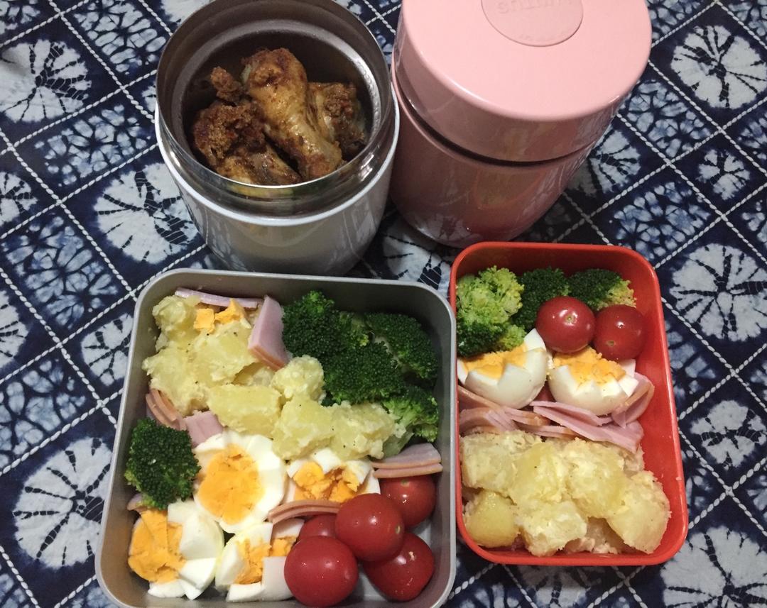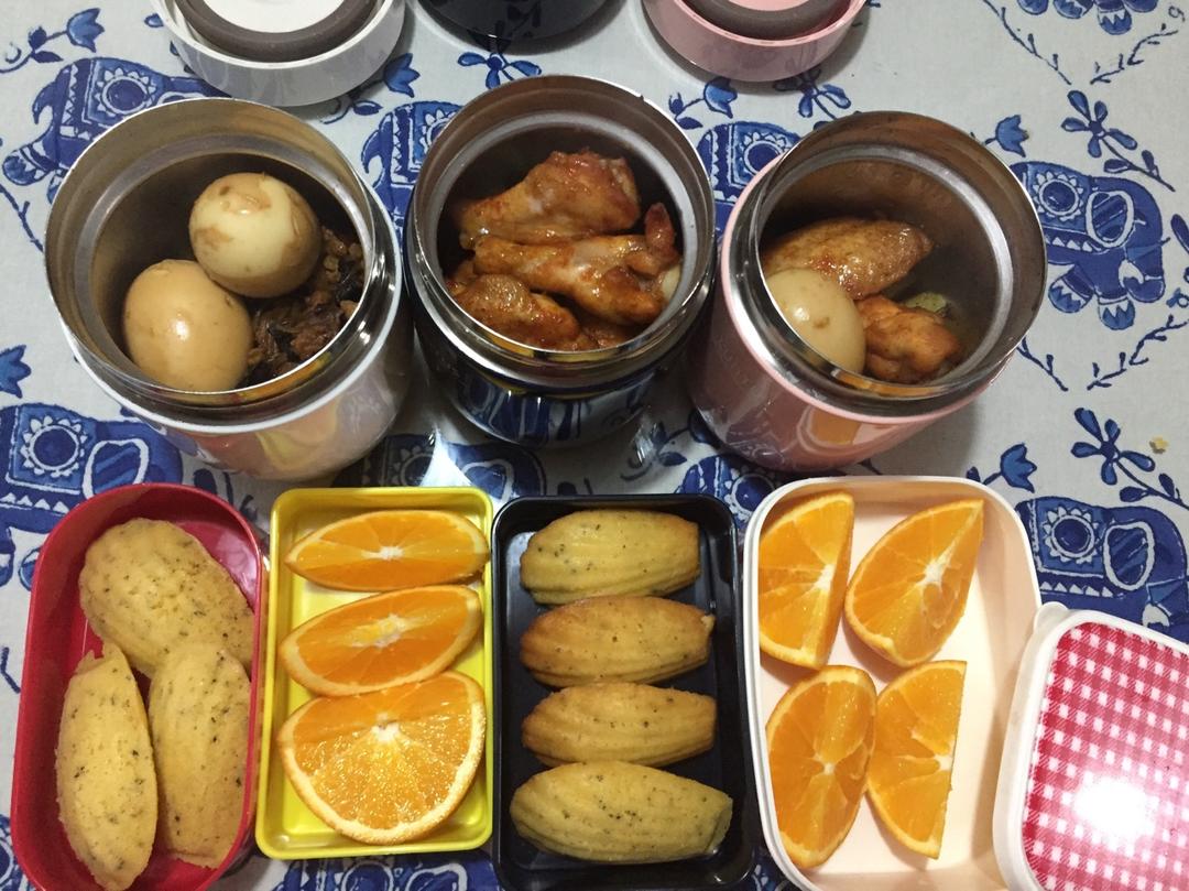 罐子里是昨晚做好的贵妃鸡翅、面筋塞肉、凤爪(这个在外面啃不太雅观,所以这次特意对劈了,个个都打Vsign😝),盒子里是鸡...