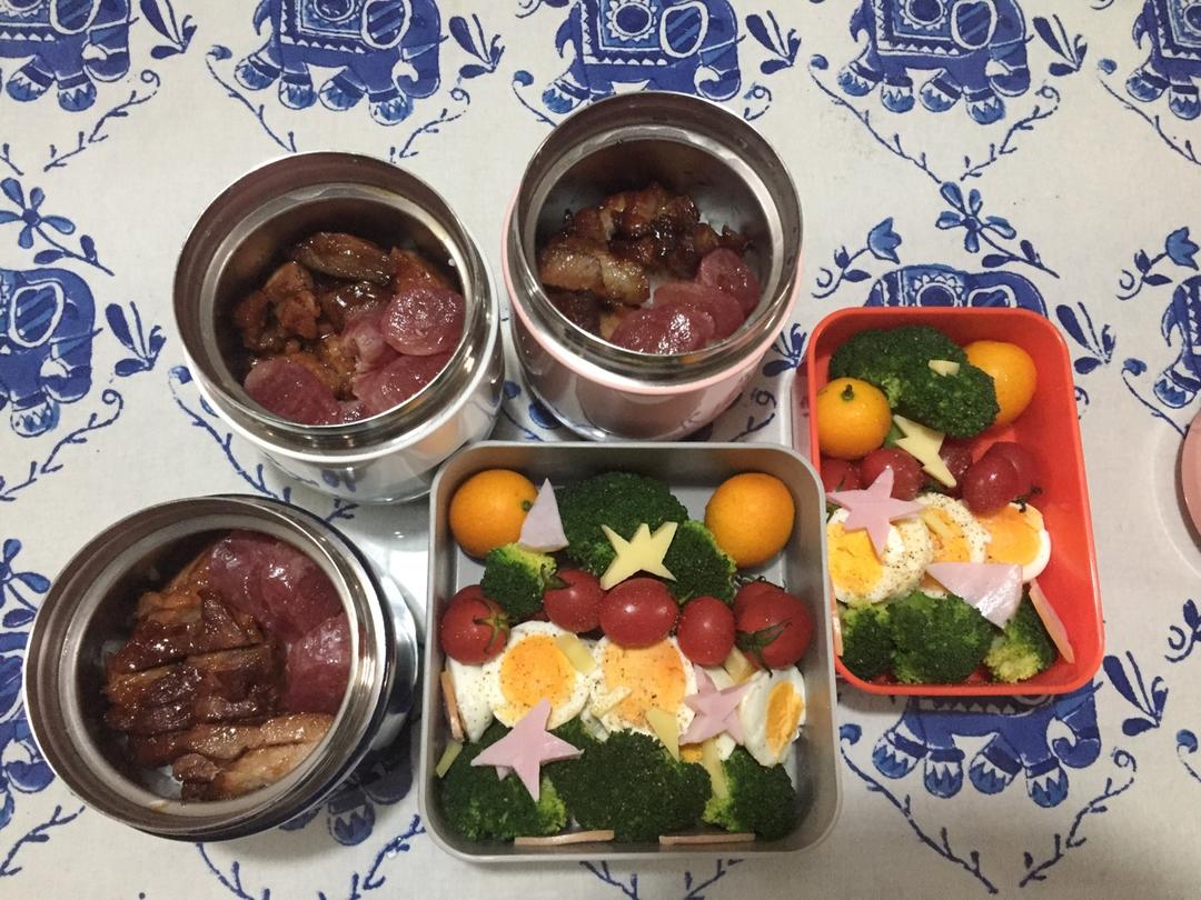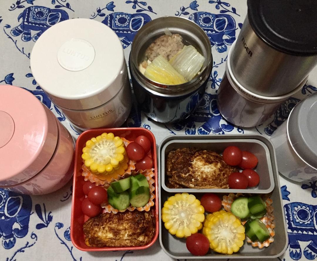 昨晚做了一砂锅狮子头,今天热过又加了娃娃菜和豆腐,给孩子带饭。糖醋荷包蛋、甜玉米、黄瓜、番茄早上准备的。圣诞节那天,小朋...