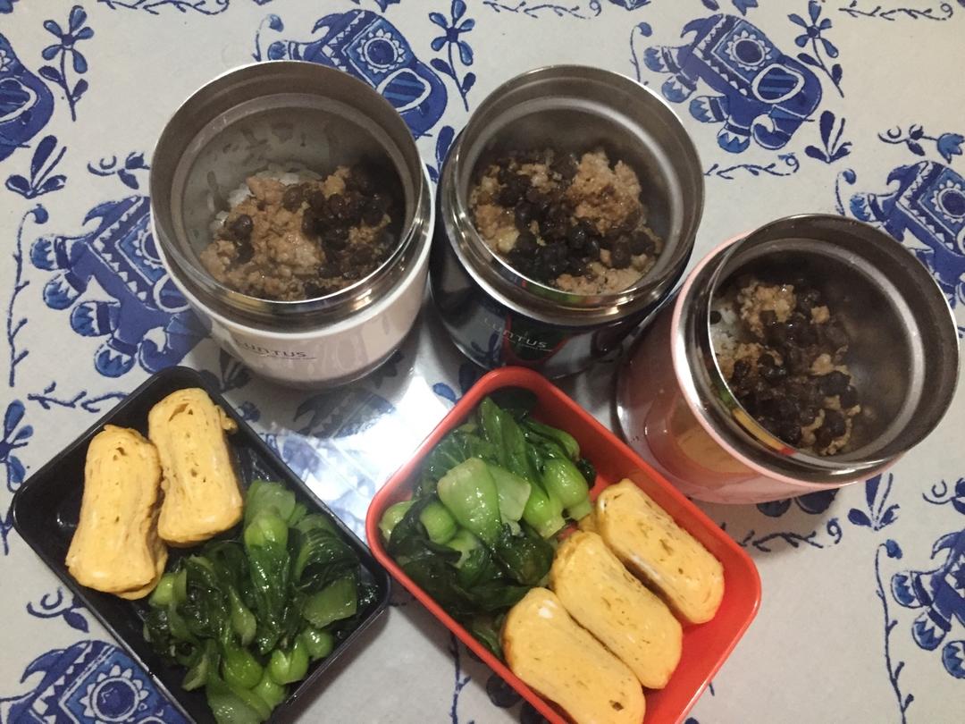 豆豉蒸肉盖饭、鸡蛋青菜 ,今天菜量比较少,因为一大早开会,实在不能迟到1分钟都不可以。。。豆豉蒸肉很下饭,我连蒸出来的汤...
