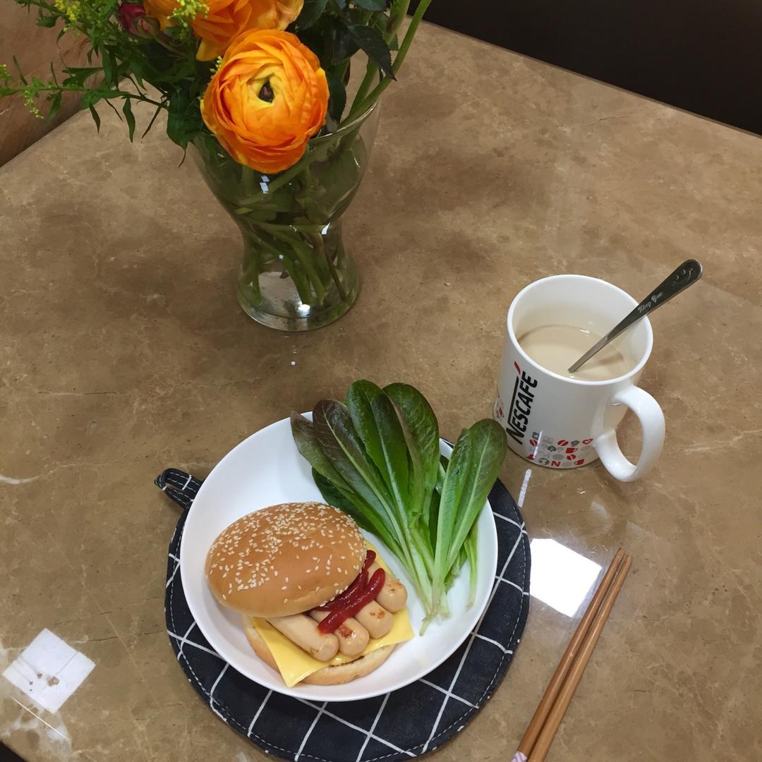张先生早早出去了,孩儿还没起床我一个人先吃完啦。汉堡配奶咖不加糖,第一茬生菜快摘完了,前些日子又种了一盆刚刚...
