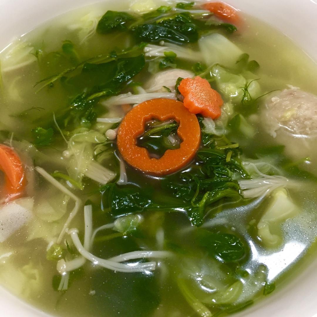 长在飘窗上的小白菜,长势喜人,绿油油鲜嫩嫩的,小心采收下来,成就了一大碗小白菜粉丝丸子汤。