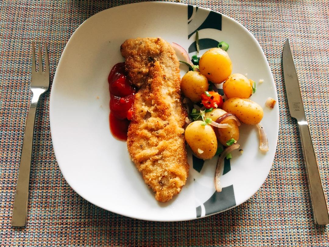 老公做的schnitzel😉